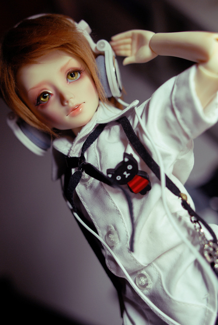 可是关节的响声,和他因皮筋拉紧而稍僵硬的动作…让我萌生起从此面妆去摸索人偶L的一面会是如何的……。觉得开始有点有趣,可是其实..我还是想皮筋能松一点就好了。(做动作不用出那么多力...好懒啊我……