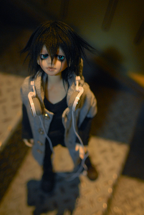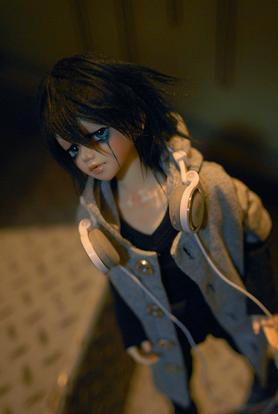 可是关节的响声,和他因皮筋拉紧而稍僵硬的动作…让我萌生起从此面妆去摸索人偶L的一面会是如何的……。觉得开始有点有趣,可是其实..我还是想皮筋能松一点就好了。(做动作不用出那么多力...好懒啊我……